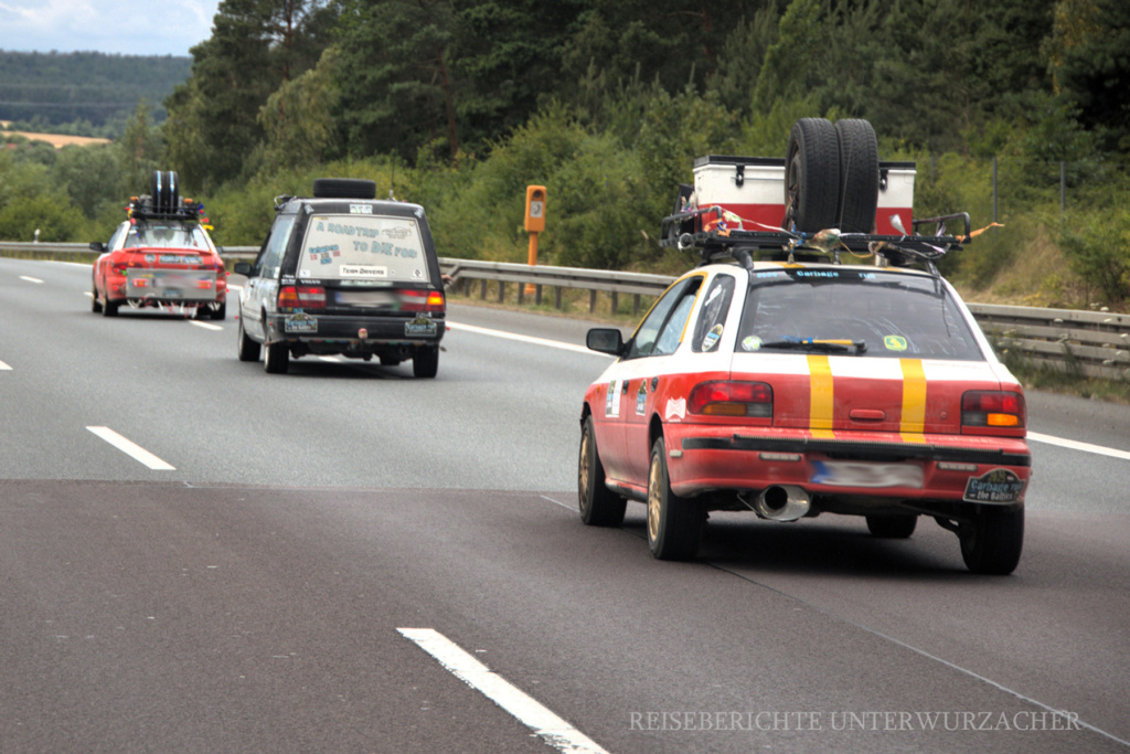 Das Wetter ist perfekt für die Fahrt, nicht zu heiß, kein Regen und auch der Verkehr hält sich in Grenzen. Unterwegs sehen wir einige komische Fahrzeuge, darunter auch ein umgebauter Leichenwagen …