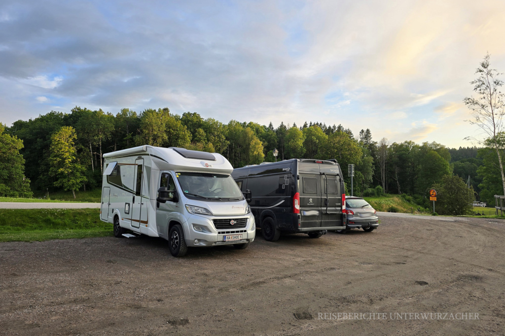 Nach gut 240 Kilometer angenehmer Autobahnfahrt bei wunderschönem Wetter, suchen wir uns in Deutschland ein geeignetes Übernachtungsplätzchen und freuen uns über den Beginn unserer heurigen, großen Reise …