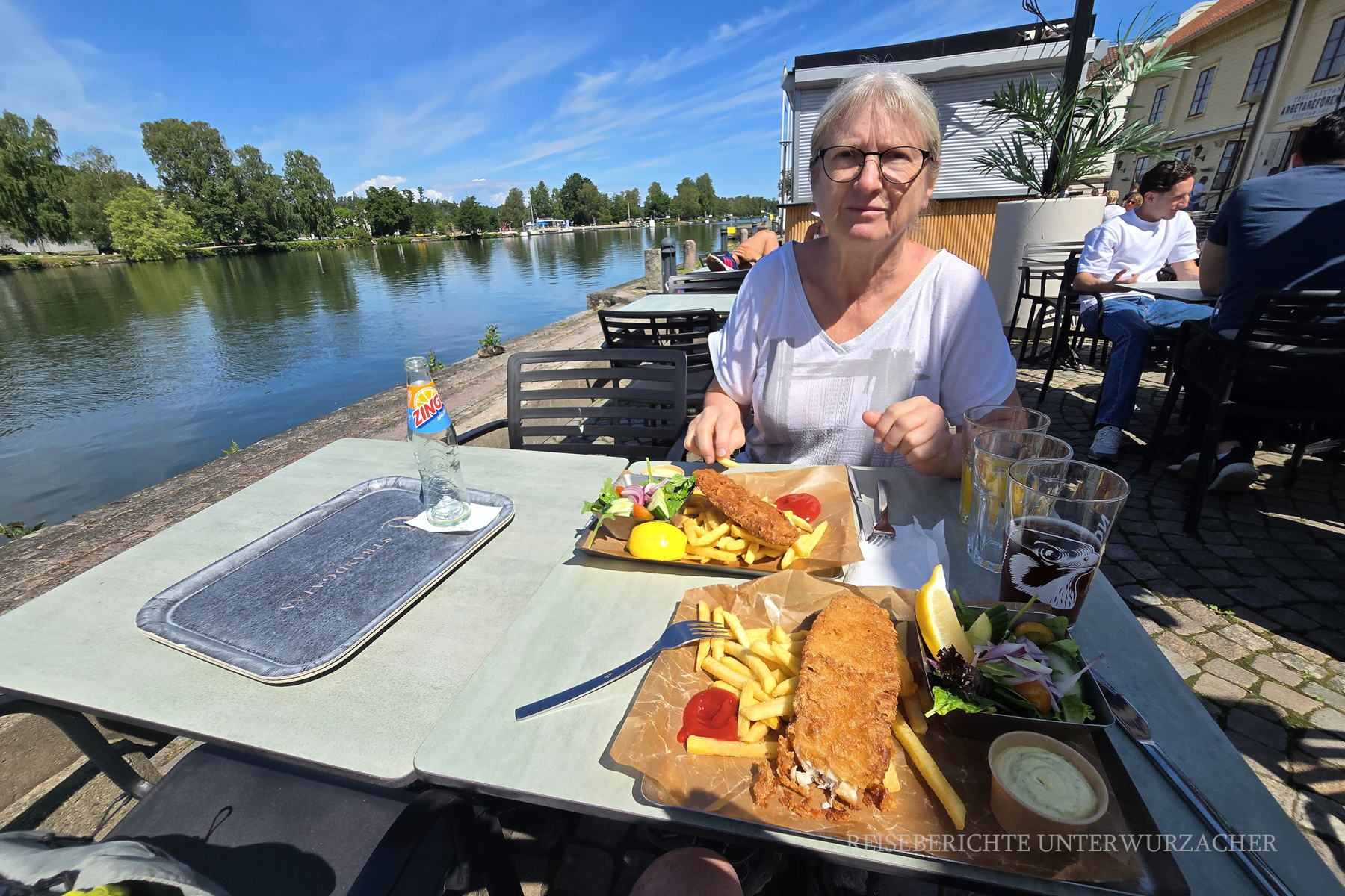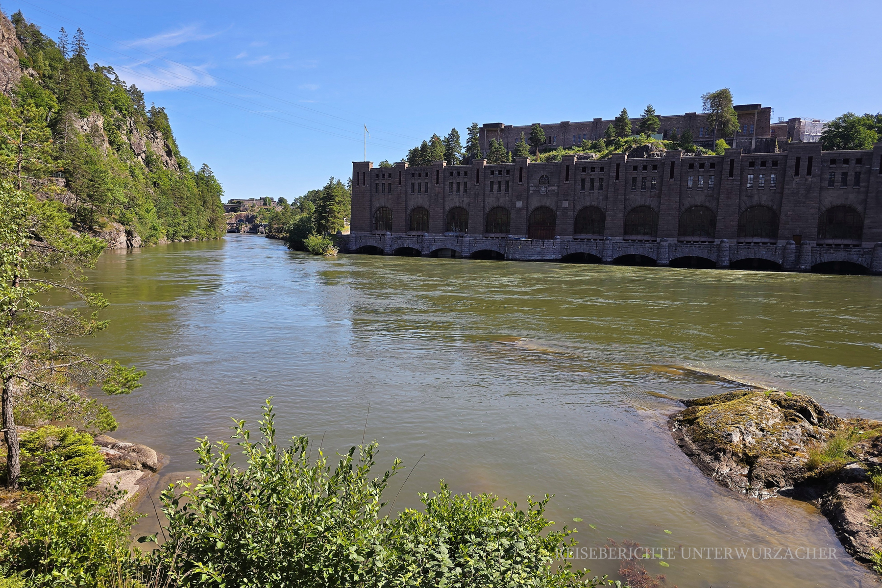 Kurz vor unserer Reise haben wir auf YouTube eine Wanderung zu den Schleusen von Trollhättan gesehen. Generell kommt uns vor, dass sich in letzter Zeit alle, uns bekannten YouTuber in Schweden/Norwegen aufhalten. Das hilft uns, neue Sehenswürdigkeiten für uns zu entdecken und diese kleine Wanderung ist wirklich wunderbar. Sie führt uns entlang des Ufers auf ausgebauten Fußwegen, vorbei an einer Hängebrücke zum Kraftwerk Olidan. Weiter geht es hoch nach Trollhättan, wo wir uns neben dem Fluss ein gutes Mittagessen schmecken lassen. Nebenbei beobachten wir die Schiffe in der danebenliegenden Brückenschleuse.