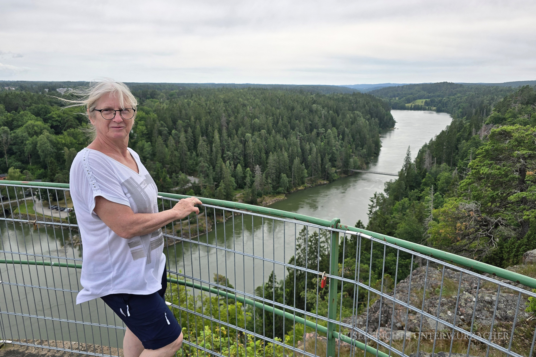 Aber auch egal – wir wandern weiter zur Aussichtsplattform Kopparklinten und staunen über die schöne Aussicht. Zum Abschluss dieser empfehlenswerten Wanderung springen wir zum ersten Mal in diesem Urlaub kurz in das kühle, aber sehr erfrischende Nass des Flusses Göta älv.